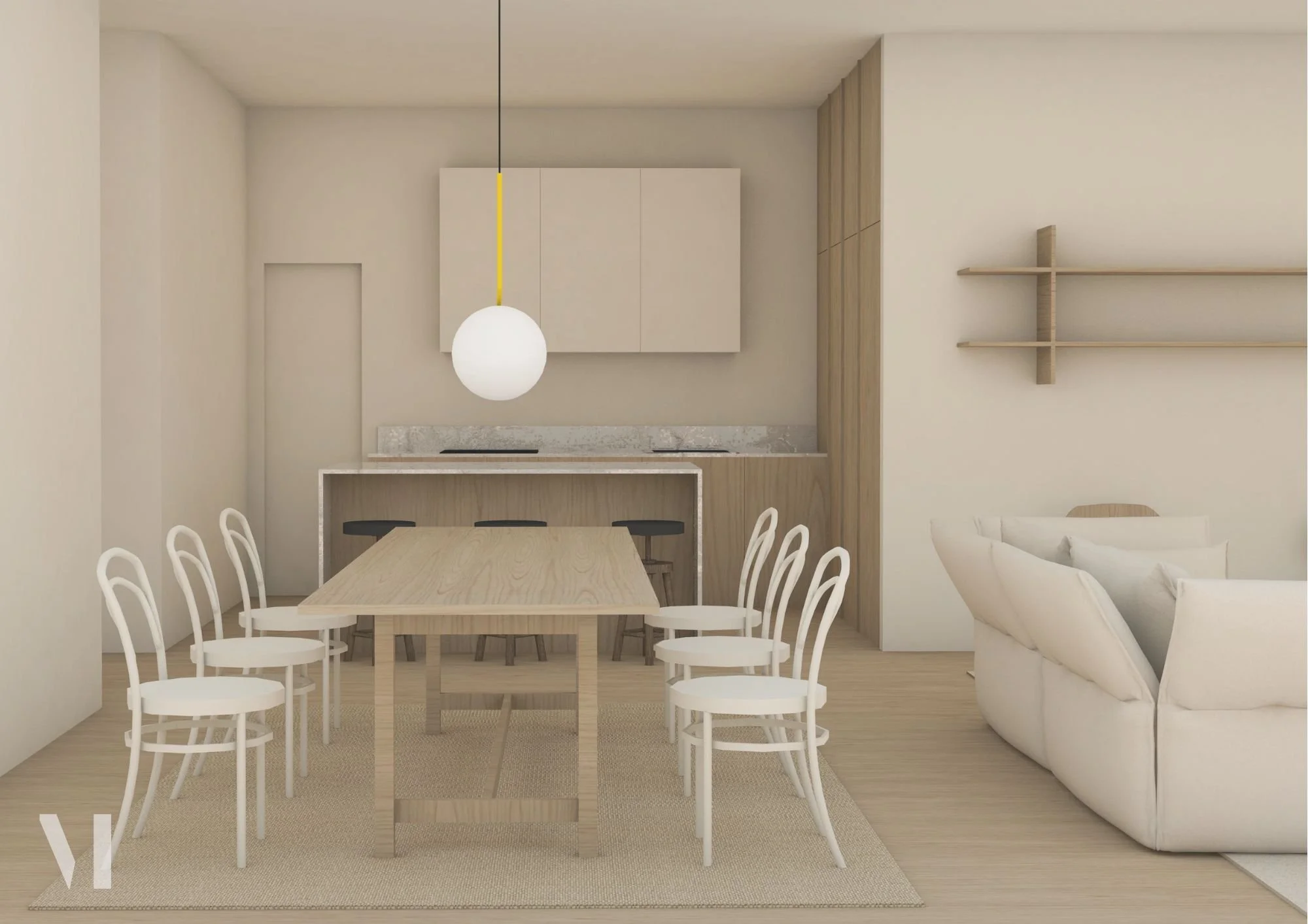 Kun olen kuullut toiveistanne ja tarpeistanne, laadin luonnossuunnitelmat, joita voitte kommentoida. Valmiista suunnitelmista saatte käyttöönne 3D-mallin, joka auttaa tilojen hahmottamisessa ja toimii hyödyllisenä apuna esimerkiksi pintamateriaalien suunnittelussa.